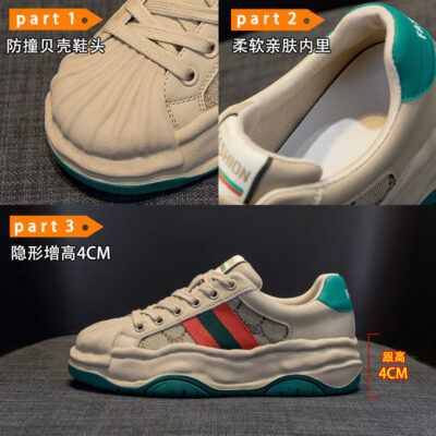 Mùa xuân và mùa hè mới 2023 giày da bố bề mặt lưới tăng da dày đáy nhẹ tất cả các trận đấu giày trắng mỏng thoáng khí