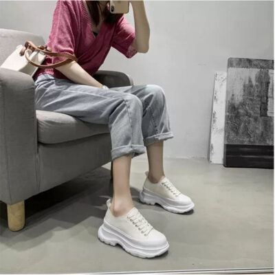 Giày vải vạn năng McQueen’s nữ mùa xuân hè 2023 tăng chiều cao đế dày giày nhỏ màu trắng đôi giày cũ giày thể thao nữ cổ cao