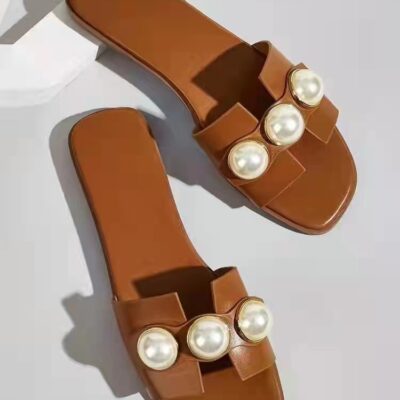 2023 xuyên biên giới ngoại thương ngọc trai mới dép đế bằng nữ dép đi biển nhẹ gót thấp mong muốn nguồn cung cấp
