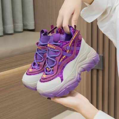 Nổ Kim Sa Lấp Lánh Bên Trong Tăng Chiều Cao Bố Giày Nữ Mùa Xuân 2023 Mới Đế Dày Giày Nữ Tất Cả Trận Đấu giày Nữ Bán Buôn