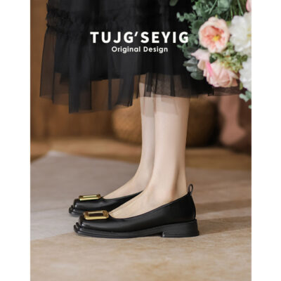 Nho mẹ studiolee nhỏ thơm phong cách đầu tròn ngọc trai đáy phẳng nhẹ nhàng Giày Mary Jane gót dày đế dày giày đơn nữ