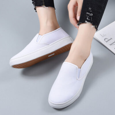 Nhỏ Màu Trắng Giày Y Tá Giày Nữ Trắng Phẳng Chống Trơn Trượt Giày Vẻ Đẹp Thoải Mái Đáy Mềm Tuổi Bắc Kinh Giày Vải AliExpress