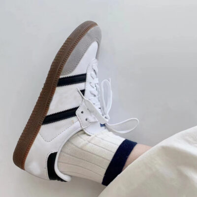 Phiên bản ba thanh của Đức giày tập nữ mùa xuân 2023 da mới phong cách cổ điển giày thể thao thường ngày giày bệt nữ