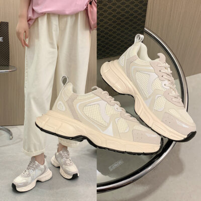 Người nổi tiếng trên Internet giày cha giày nữ mùa hè thoáng khí bên trong tăng chiều cao giày nữ 8 lưới thể thao và giải trí phần mỏng đế dày giày nhỏ màu trắng