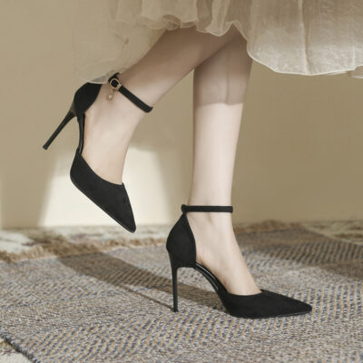 Size Nhỏ 313233 Da Lộn 2023 Mới Đen Nhọn Rỗng Giày Cao Gót Đế Size Lớn 41-43 Giày Đơn Nữ