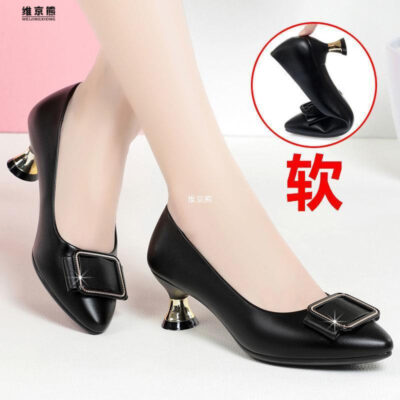 Phong Cách Mới Da Thật Mềm Đơn Giày Công Sở Nữ Gót Giữa Dẹt Miệng Chống Trơn Trượt Bốn Mùa Mẹ giày Nữ Gót Nhọn