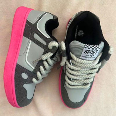 Phiên bản Hàn Quốc hợp thời trang eo nhỏ Giày Forrest Gump mũi tròn phối ren lưới màu đỏ giày chạy bộ phong cách đại học giày nữ thời trang giản dị