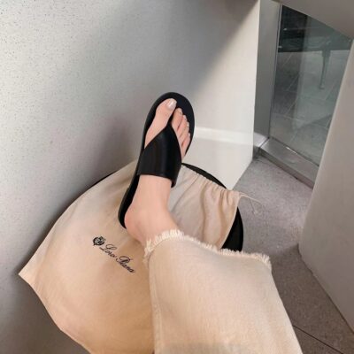 Phong cách của Su Yinyin là sự kết thúc của thời trang ~ đôi dép lê đế bằng bằng da * ow Xăng đan đế bằng hình tam giác thông cho phụ nữ vào mùa hè