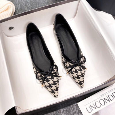 Su Yinyin cùng phong cách nhỏ thơm phong cách giày đơn đế phẳng miệng nông mũi tròn giày ba lê phối màu nơ kiểu Pháp