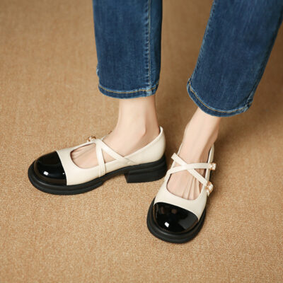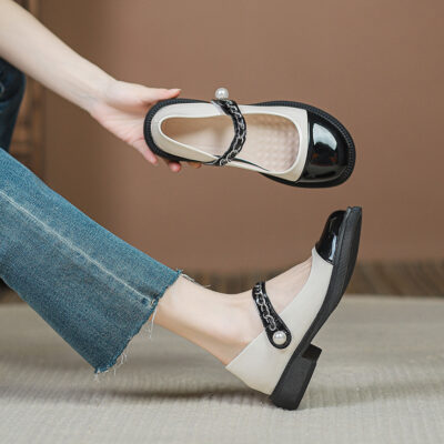 Phong Cách Pháp Giày Mary Jane Nữ Gót Dày 2023 Mới Một Từ Thắt Lưng Preppy Giày Da Nhỏ Đế Dày Cổ Đơn giày Nữ