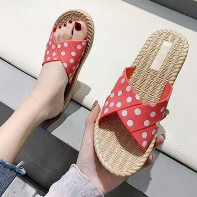 Phong cách mới của dép và dép nữ mùa hè phù hợp với tất cả thời trang sóng chấm lưới màu đỏ đế mềm bằng phẳng với giày đi biển chống trượt cho nữ