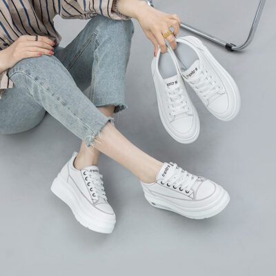 Tăng Chiều Cao 6CM Rỗng Lưới Thoáng Khí Giày Nhỏ Màu Trắng Da Nữ Xuân Thu 2023 Mới Bánh Xốp Đế Dày giày Thường