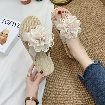 Phong cách dân tộc mùa hè mới giày lười thời trang nữ bề mặt dây gai giả dép đi trong nhà dép nữ dép xuyên biên giới giản dị của phụ nữ