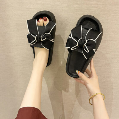 Xăng đan đế dày và dép đi trong nhà mùa hè của phụ nữ thời trang dễ thương chống trượt nơ lớn bên ngoài mặc ở nhà trong nhà từ