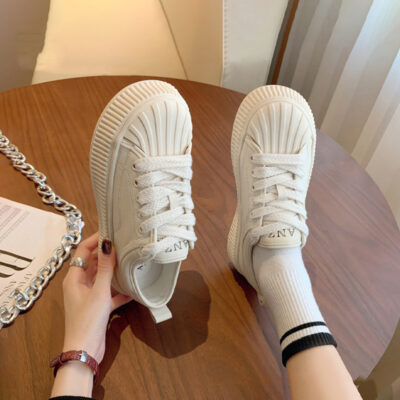 Vỏ đầu giày nhỏ màu trắng đế dày nữ mùa xuân 2023 mới phù hợp với giày thể thao thường ngày tăng giày thể thao ins triều
