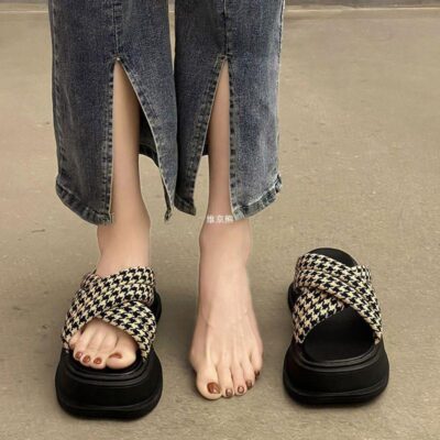 Váy cưới Artifact Giày đế bệt Mang bên ngoài Dép xỏ ngón Nền tảng đa năng thời trang Giày cao gót dốc chống trượt Xăng đan đế dày hợp thời trang dành cho nữ