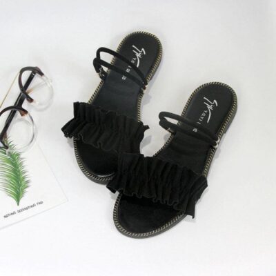 Xăng đan một chữ nữ học sinh mùa hè đế bằng bèo nhún phiên bản Hàn Quốc 2023 thời trang mới dép một dép hai dép