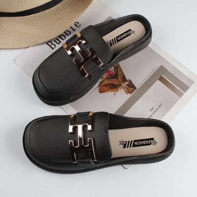 Xăng đan nửa túi, dép nửa đầu Bao Đầu, dép bốn mùa mới cho nữ, giày lười Muller đế bằng mềm cho nữ