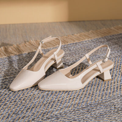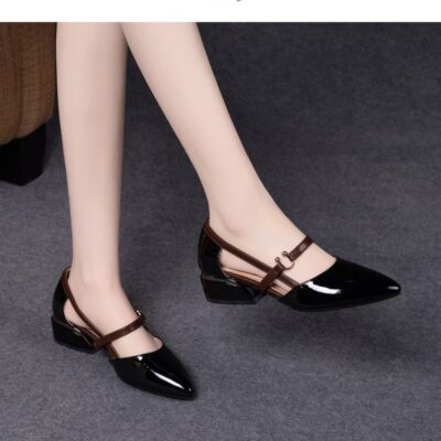 Xăng đan Bao Đầu nữ đế thấp da láng mùa hè 2023 giày mũi nhọn đế dày mới giày đơn giày đơn nữ da mềm