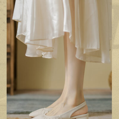 Xăng đan cao gót nữ đầu vuông xếp ly kiểu Pháp mùa hè 2023 phong cách cổ tích mới với váy slip-on gót mảnh khí chất