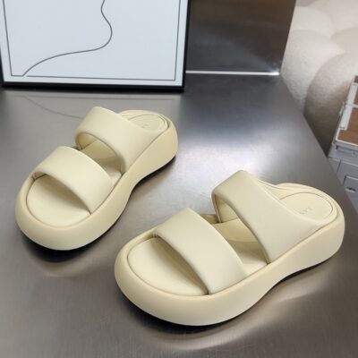 Xăng đan đế bằng hai quai mùa hè 2023 phong cách mới với váy đế dày tăng màu trắng Xăng đan và dép đi trong nhà giày đi biển nữ