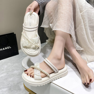 Xăng đan ngọc trai gió cổ tích thời trang mùa hè phiên bản Hàn Quốc phông chữ muffin đế dày tan chảy dép đi biển và dép đi trong nhà