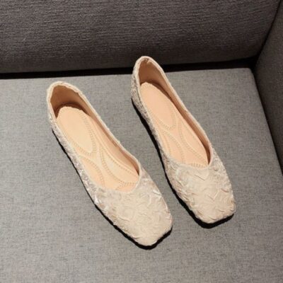 Vuông Mũi Phẳng Giày Đơn Nữ 2023 Mới Dẹt Đậu Đậu Giày Vải Satin Đơn Giản Muỗng Giày Giày Công Sở Giày Thuyền