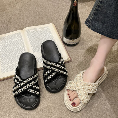 2023 xuyên biên giới ngoại thương ngọc trai mới dép đế bằng nữ dép đi biển nhẹ gót thấp mong muốn nguồn cung cấp
