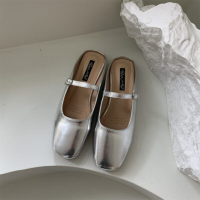 Bạc Bao Đầu nửa kéo kiểu Pháp dép thích hợp cho nữ đi dép mùa hè 2023 phong cách mới với váy giày đơn