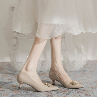 21004 Giày cưới đế bằng mũi nhọn giày nữ 2023 giày cô dâu đế dày khí chất giày phù dâu gót thấp