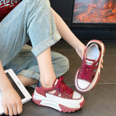 Giày bố đế dày nữ 2023 thời trang mới thoải mái phù hợp mọi dáng chân dài đỏ lưới giày thể thao thường ngày