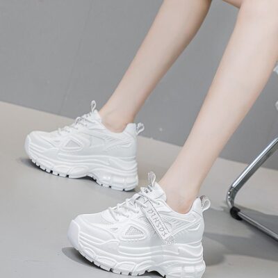 Đệm khí phía dưới bên trong giày nữ tăng chiều cao giày hợp thời trang mùa hè mới cỡ lớn lưới thoáng khí giày thể thao cỡ lớn ngoại thương