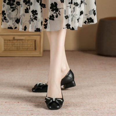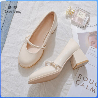 Giày Mary Jane nữ mùa xuân 2023 thời trang mới nơ ngọt ngào dày gót cao gót mũi tròn phong cách retro