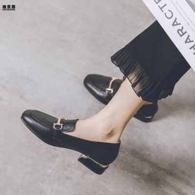 Giày da nhỏ với một đôi giày đơn thời trang mùa thu mới Giày nữ phù hợp với mọi phong cách Anh Giày nữ mũi nhọn gót nhọn Giày nữ