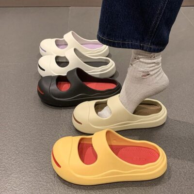 Lưới đỏ phong cách ins gió Bao Đầu bán dép nữ mùa hè 2023 phong cách mới mặc ngoài chống trượt giày có lỗ hở nụ cười