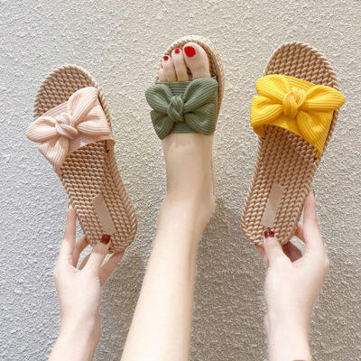 Dép Nữ Mùa Hè Mặc Ngoài Nơ Thời Trang Thu Đông 2023 Mới Lưới Đỏ Phiên Bản Hàn Quốc Dép Và Dép Chống Trượt Đa Năng