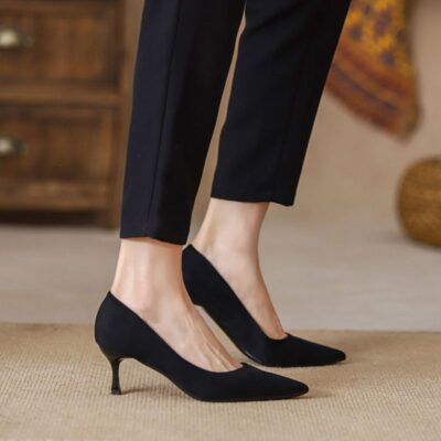 Giày mũi nhọn giày cao gót nữ giày cao gót mùa thu 2023 giày công sở da lộn màu đen mới giày nữ giày chuyên nghiệp