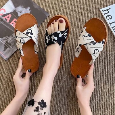 Dép đi trong nhà phong cách mới của phụ nữ mặc bên ngoài mùa hè đơn giản trong nhà nhà bằng phẳng chống trượt phòng tắm đế mềm dép cổ tích và dép đi trong nhà