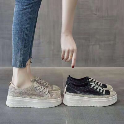 Paris giày lốp da đế dày tăng chiều cao lưới thoáng khí giày nữ giày Ôn Châu giày thể thao giày da bố nam nữ thời trang