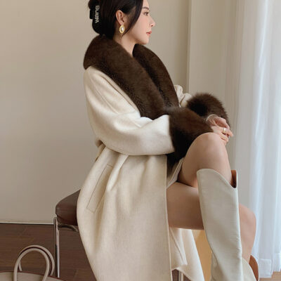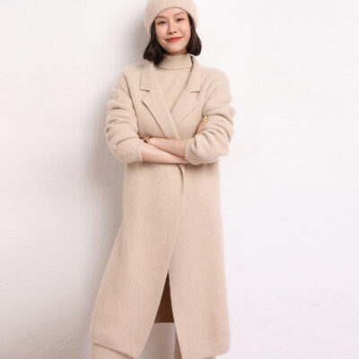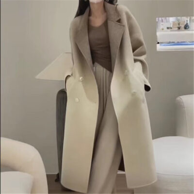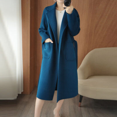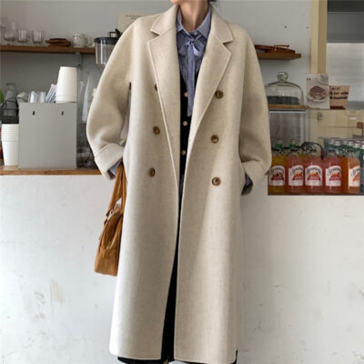Áo khoác len cashmere hai mặt thủ công phong cách Hàn Quốc dài cao cấp Châu Âu ga nữ áo khoác cashmere nhà máy cung cấp trực tiếp