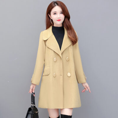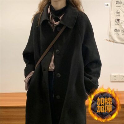 Áo khoác Đại Liên áo khoác nữ hợp thời trang mùa thu đông mới dày dặn phù hợp với mọi đối tượng áo khoác len nữ dài vừa phải dài qua đầu gối phù hợp với mọi lứa tuổi