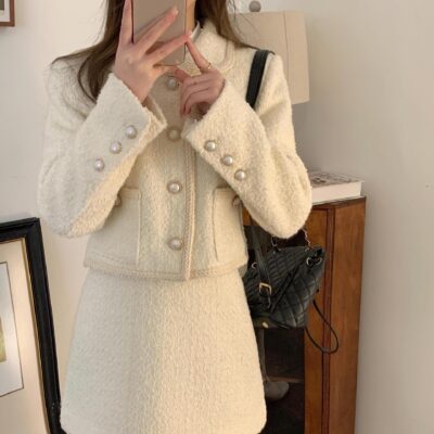 Áo khoác len nữ mùa thu đông nhỏ hương thơm khí chất người nổi tiếng len cừu nhỏ ngắn phù hợp với áo dài tay