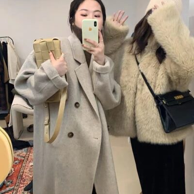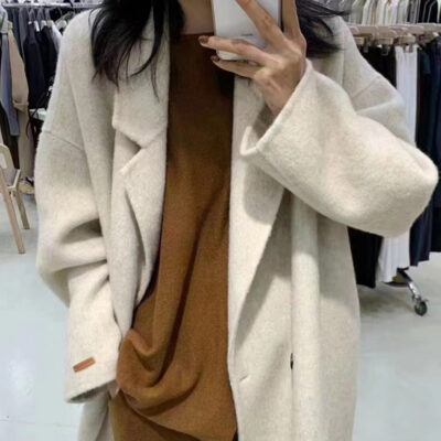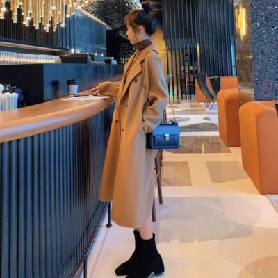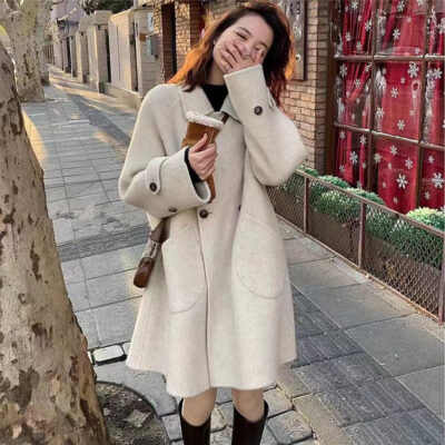 Phiên bản hàn quốc của áo khoác len nữ mùa thu đông 2023 phong cách nước ngoài mới áo khoác len hai mặt dài vừa phải thời trang nữ