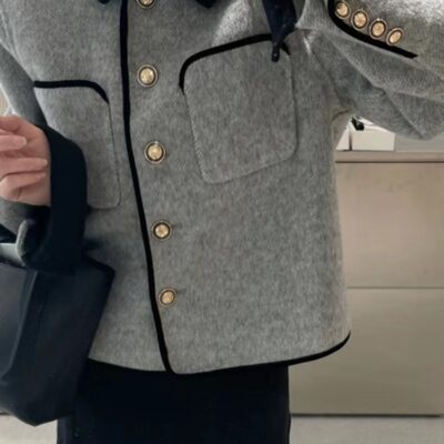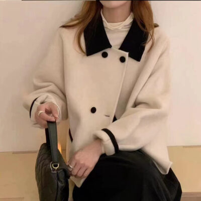 Consai Khóa Vàng Nhỏ Màu Pháp Tương Phản Len Áo Khoác Len Hai Mặt Nhỏ Nhỏ Tương Phong Áo Khoác Ngắn Cho Nữ