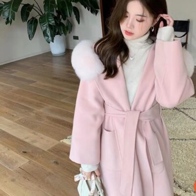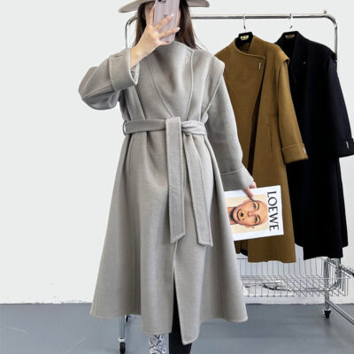 Thắt lưng tóc dài cao cấp phiên bản Hàn Quốc khí chất mới thanh lịch áo khoác len hai mặt dài trung bình cho nữ áo khoác nữ cao cấp