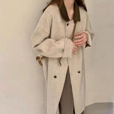 Áo khoác len hai mặt áo khoác dáng rộng dài vừa phải cho nữ có cổ phù hợp với mùa thu đông phiên bản mới của áo gió len cashmere kiểu Hàn Quốc