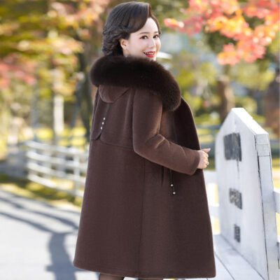 Cashmere áo khoác bán buôn mẹ mùa đông áo khoác len dày vừa dài mới phụ nữ trung niên và người cao tuổi mùa đông nhung chồn