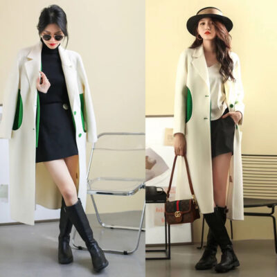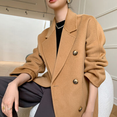 Áo khoác len hai mặt nữ mùa thu đông 2023 hàng mới 100% cashmere nhà máy bán hàng trực tiếp phong cách cổ điển đi làm trông mỏng