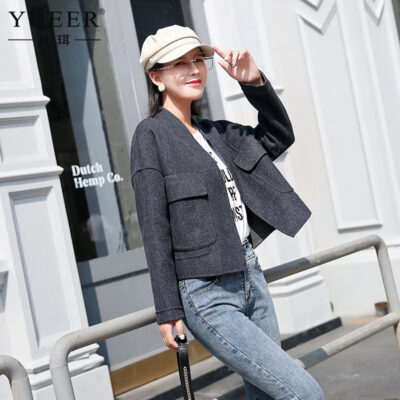 Áo khoác cashmere ngắn hai mặt Yueer đầu mùa xuân phong cách nóng bỏng xu hướng thời trang áo khoác cashmere nhỏ trong quần áo nữ hợp thời trang