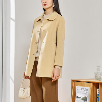2023 mới Zhijia ngắn hai mặt cashmere cổ ống khói áo khoác cao cấp